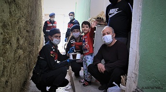 Türkiye genelinde olduğu gibi Elazığ’da da korona virüsle mücadele kapsamında her türlü tedbir alınırken, sosyal çalışmalar da aralıksız sürüyor. Bu kapsamda merkeze bağlı Hankendi köyü Bahçelievler Mahallesi'nde ikamet eden babası kronik kalp rahatsızlığı olan 12 yaşındaki Burkay Çakmak, 4 yaşına giren akciğer ve kan eksikliği rahatsızlığı bulunan kardeşi Eymen için, Valilik koordinesinde hizmet veren Vefa Sosyal Destek grubundaki jandarmayı aradı. Ağabey Çakmak, aradığı jandarmadan, kardeşi için doğum günü pastası alma imkanları olup olmadığını sordu. Bu isteği geri çevirmeyen İl Jandarma Komutanlığı'na bağlı ekipler hemen harekete geçti, doğum günü pastası alarak hem aileye hemde küçük Eymen'e sürpriz yaptı.