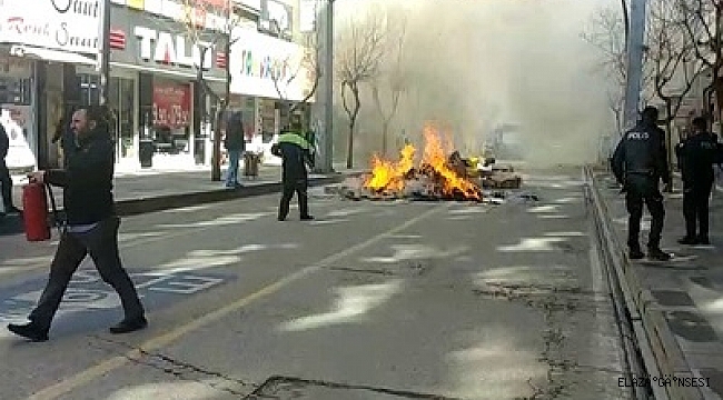 Elazığ'da geri dönüşüm malzemesi toplayan kamyonetteki malzemeler yanmaya başladı, sürücü caddeye boşaltma yaparak aracı yanmaktan kurtardı. Yangın,kent merkezinde Korona virüs tedbirleri kapsamında araç trafiğine kapatılan Gazi caddesinde meydan geldi. Edinilen bilgiye göre, seyir halinde olan geri dönüşüm malzemeleri toplayan kamyonetin arka kısmında yangın çıktı. Kutuların alev alev yanmaya başladığını fark eden sürücü aracı durdurup, caddeye boşaltma yaptı. Bu sayede aracın yanmasına engel olunurken, durum itfaiye ekiplerine bildirildi. Olay yerine kısa sürede gelen itfaiye ekipleri, cadde üstünde yanan kutuları söndürdü.