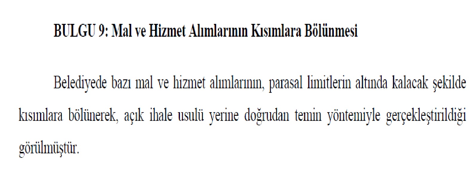 “Rekabeti, eşit muameleyi, güvenilirliği ve kaynakların verimli kullanılmasını sağlamak amacıyla aynı nitelikte ve bütünlük arz eden işlerin Kanun’da öngörülen ihale usulleriyle yapılması, doğrudan temin yönteminin ise yalnızca Kanun’da belirtilen amaç ve şartlara uygun şekilde kullanılması gerekmektedir