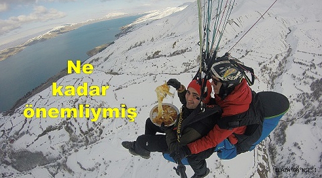 Elazığ’da yaz kış yamaç paraşütçülerinin ilgi gösterdiği Hazar Baba Dağı’nda bu kez sosyal medya fenomeni Burak Özdemir, gök yüzünde ilginç bir deneyim yaparak künefe yedi