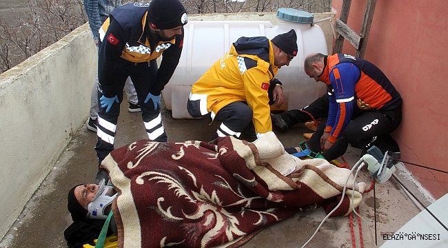 Olay, merkeze bağlı Yurtbaşı Beldesi Sanayi Sokakta bulunan 2 katlı müstakil evde meydana geldi. Edinilen bilgiye göre, 70 yaşındaki Abdurrahman Aydoğdu, tıkanan bacayı temizlemek için çatıya çıktı. Daha önceden belinden ameliyat olan Aydoğdu, ayağının kayması sonucu 2 metre aşağıda yer alan balkona düştü. Yerinden kalkamayan ve mahsur kalan Aydoğdu'yu gören eşi durumu sağlık ve AFAD ekiplerine bildirdi. Olay yerine gelen sağlık ekipleri, ilk müdahaleyi yaptıktan AFAD operasyon için harekete geçti. Ekipler, halat ve sedye yardımıyla yaşlı adamı aşağı çekerek kurtardı. Olay yerinde hazır bekleyen sağlık ekipleri şahsı, ambulansla Fethi Sekin Şehir Hastanesine kaldırdı.