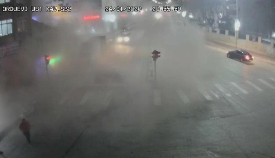Vatandaşların o anda kaçışmasının yanı sıra ortaya çıkan toz bulutu da görüntülere yansıdı.