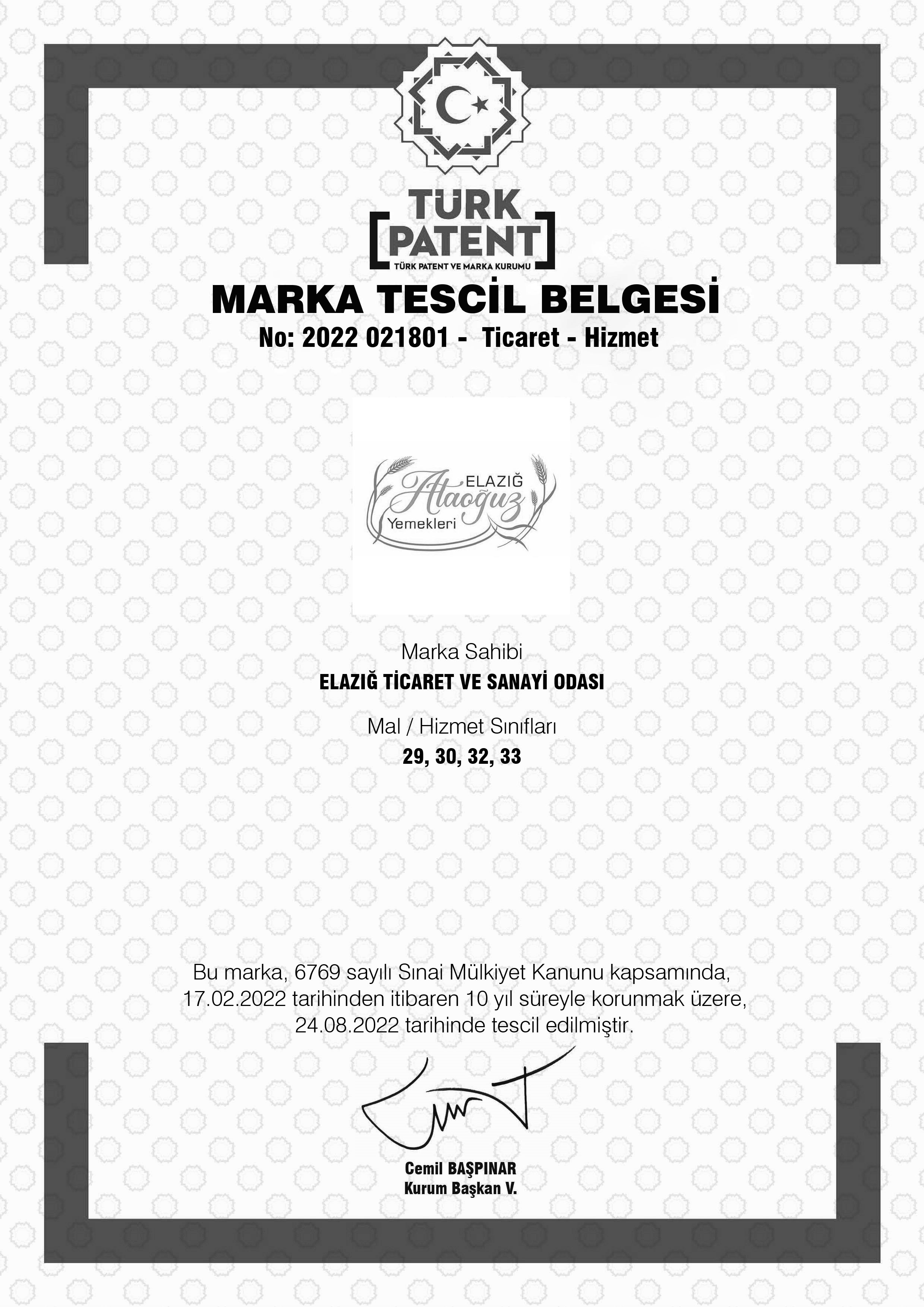 Elazığ yöresel yemeklerini incelemesini talep ettiğimiz gastronomi uzmanları ve tarihçilerimiz yöremizdeki bir çok geleneksel yemeğin özellikle de et, bulgur ve hamura dayalı yemeklerin Orta Asya’dan günümüze kadar geldiğini kaynaklara dayanarak ifade etmektedirler. Bu tespit aslında çok değerlidir. Özellikle gastronomi turizminde farkındalık oluşturmak ve hem yerli hem de yabancıların bu alana yoğunlaşmalarını sağlayarak Elazığ Ataoğuz Yemeklerine merak ve ilgi uyandırmak istiyoruz. Elazığ Ataoğuz Yemekleri çatısı altında bir çok yemeğimizin ve ürünümüzün coğrafi tescillerinin de alınarak hem korunması hem de ticarileşmesini sağlamak istiyoruz. 2018 yılında Odamız seçimleri öncesinde açıklamış olduğumuz projelerimizden biri olan Elazığ’ın gastronomi turizminde öne çıkarılması için yapılacak girişimlerden biri olan bu konuda aldığımız mesafeler bugün çok değerli olmuştur. Odamız bünyesinde kurulmuş olan ve bir yılı aşkın bir süreden beri çok değerli hizmetlerde bulunan Coğrafi Tescil Çalışma Komisyonu Üyelerimiz planlı ve hedef odaklı olarak çalışmalarını sürdürmektedir. Fırat Üniversitesi, İl Tarım ve Orman Müdürlüğü, Fırat Kalkınma Ajansı, Odamız profesyonelleri ve gönüllülerden oluşan komisyonumuz ülkemizin ikinci ata tohumu olan Menceki Buğdayının tescilini alma başarısı göstermiştir. Menceki Buğdayı ile birlikte Elazığ Ataoğuz Yemekleri için de artık yeni bir süreç başlamıştır. Zira Menceki Buğdayına dayanan bulgurlar, irmik, un, şehriye, makarna ve benzeri bir çok ürün için artık Elazığ adına işler daha da kolaylaşmıştır. Komisyonumuz Coğrafi Tescili Yapılacak tüm bu ürünlerin Elazığ Ataoğuz Yemekleri adı altında ticarileşmesi için süreci tüm boyutları ile profesyonelce yürütmektedir.Türk Patent ve Marka Kurumu tarafından yayınlanan raporlara baktığımızda çok küçük illerin bile en az 7/8 tescilli yemeği varken Elazığ gibi ülkemizin en zengin ikinci mutfağına sahip bir ilin halen bir tek yemeğinin tescillenmemiş olması ilimiz adına çok ciddi bir eksiklik olmuştur. Odamız ve tüm paydaşlarımızla birlikte bu açığı en kısa sürede kapatarak ve bir çok ilin önüne geçerek ilimizi bu alanda bir marka şehir haline getirmek istiyoruz.Özellikle bu süreçte başta ilgili STK’larımız olmak üzere, yerel yönetimler ve kurumlarımızın da katılımı ile Çalışma Komisyonumuzun genişletilmesi ve eş zamanlı olarak farklı ürünler üzerinde çalışmalar başlatılması için girişimler başlatacağız. Bu düşüncelerle, Elazığ Ataoğuz Yemekleri Marka Tescilinin ilimize hayırlı olmasını diliyor, Elazığ adına çok değerli hizmetler gerçekleştiren Coğrafi Tescil Çalışma Komisyonu Üyelerimizi kutluyorum” dedi.