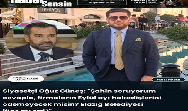 Sosyal medya üzerinden Elazığ Belediyesi’ne kamuoyu adına sorular yönelten Güneş, yetkililerden açıklama beklerken, belediyenin iflasın eşiğinde olabileceğine dair endişelerini de dile getirdi. Güneş’in açıklamaları, şehirde büyük yankı uyandırdı.Oğuz Güneş’in Elazığ Belediyesi’ne yönelttiği 5 kritik soru ise şöyle:
