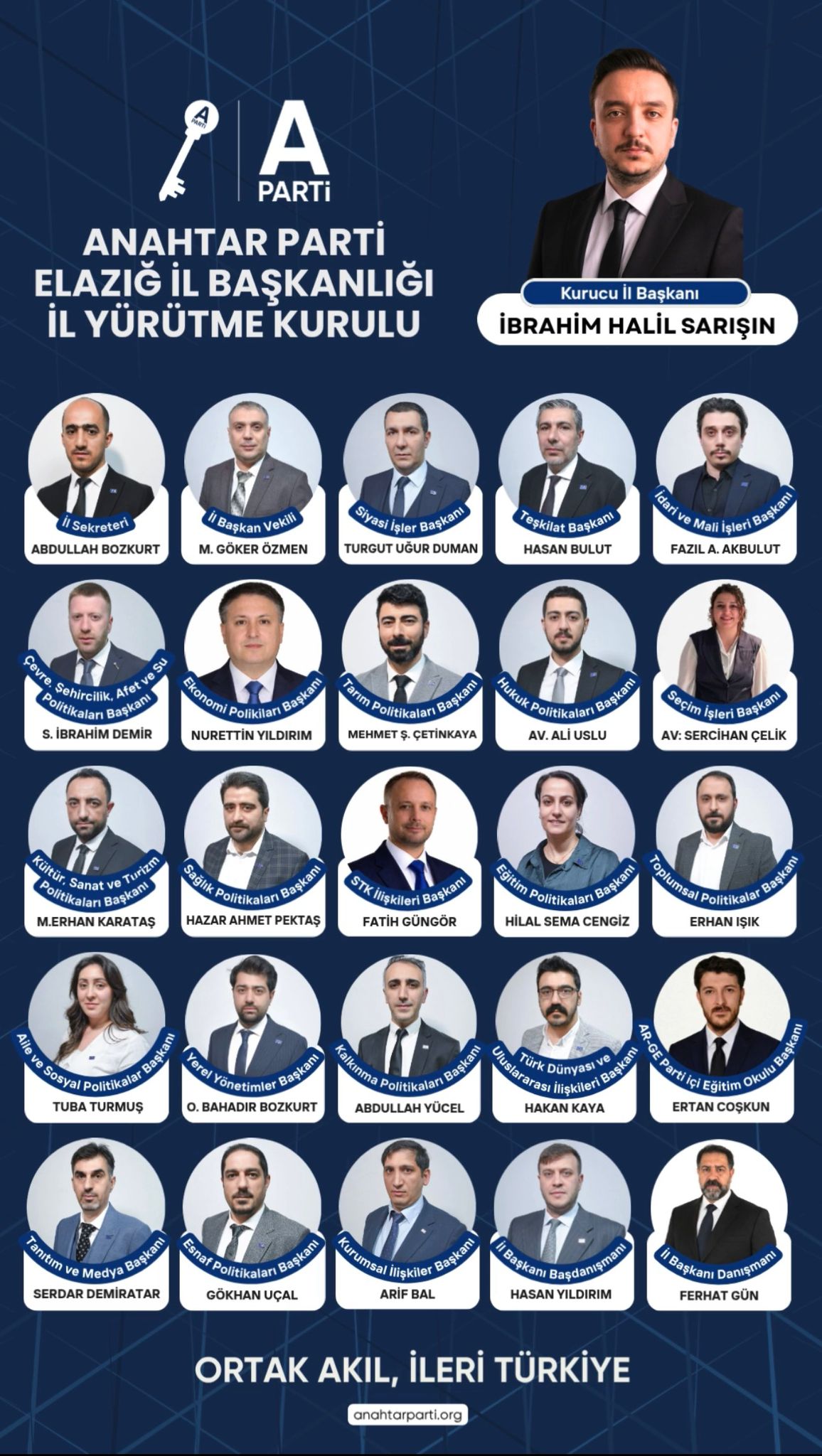 Anahtar Parti’nin Elazığ İl Yürütme Kurulu açıklandı. İl Başkanı İbrahim Halili Sarışın, yeni döneme ilişkin dikkat çeken açıklamalarda bulundu