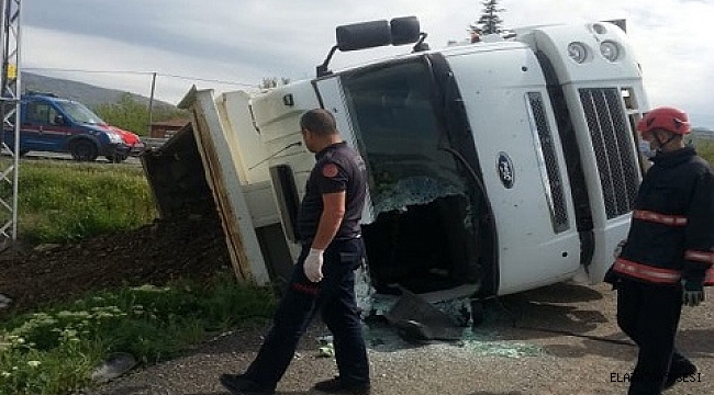 Elazığ’da kum yüklü kamyon devrildi, sürücüsü hafif yaralandı. O anlar ise güvenlik kamerası tarafından saniye saniye kaydedildi. Kaza, Elazığ-Bingöl karayolu Güntaşı mevkiinde meydana geldi. Edinilen bilgiye göre, R.Y. idaresindeki 23 DE 991 plakalı kamyon, tali yola girdikten sonra devrildi. Kazada sürücü hafif yaralandı. Yaralı ambulansla Fethi Sekin Şehir Hastanesi'ne kaldırıldı. O anlar ise güvenlik kamerasına saniye saniye yansıdı.