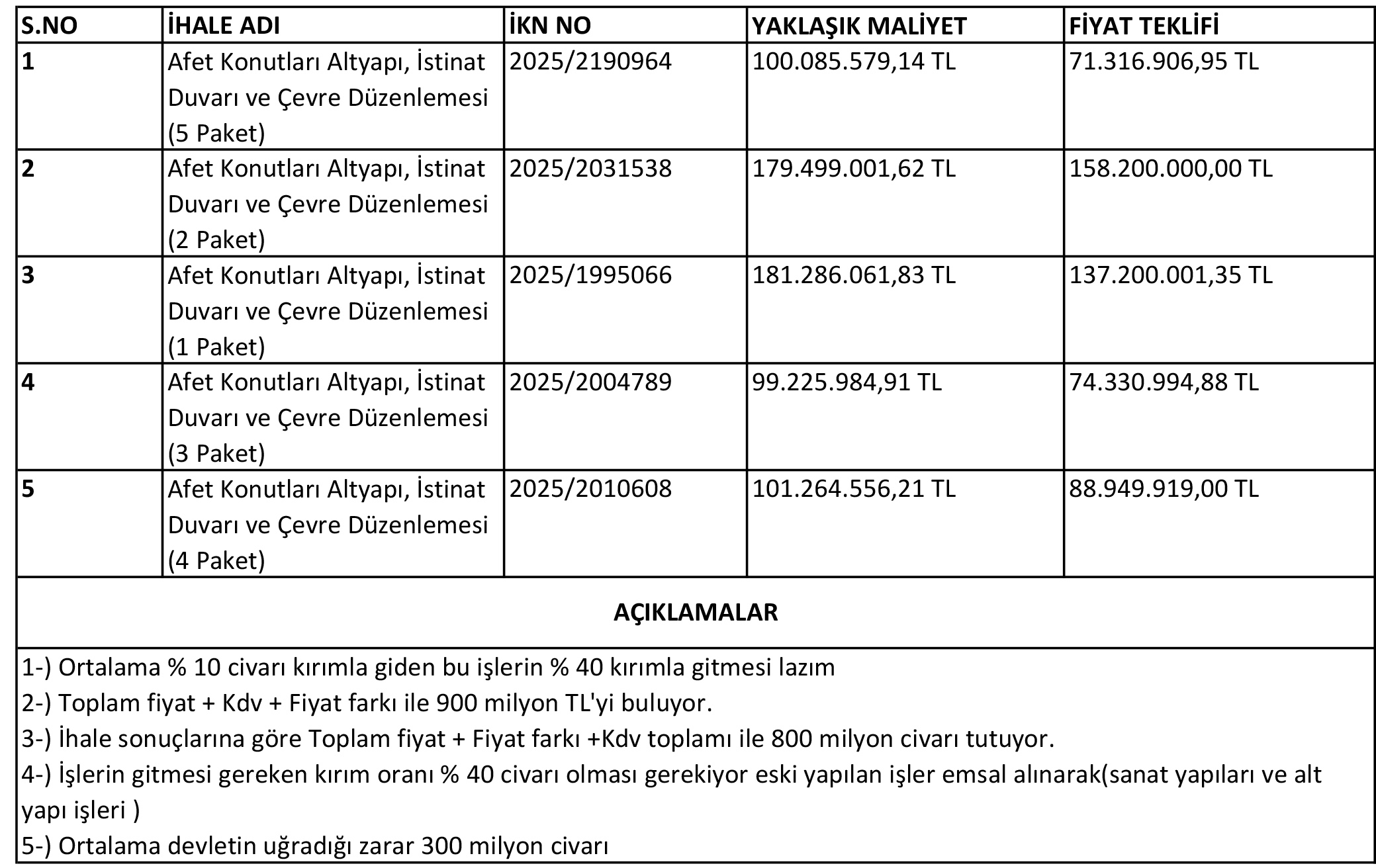 YETKİLİ KURUMLARA İNCELEME ÇAĞRISIElazığ İnşaat Müteahhitleri Derneği, açıklamasında şu soruların yetkili denetim ve inceleme mercileri tarafından ivedilikle araştırılması gerektiğini kamuoyunun takdirine sundu:- İhalelerin hangi gerekçelerle pazarlık usulüyle gerçekleştirildiği,