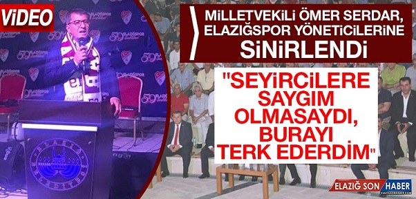Serdar, konuşmasını şöyle sürdürdü "Sinevizyonda bir şey vardı, bir kasıt aradığımdan değil. Elazığspor’a kimsenin sahip çıkmadığı dönemde sahip çıkıldı, şu yapıldı, bu yapıldı. Teşekkür bir kişiye edildi. Ayıptır, günahtır, yazıktır. Elazığspor’un hangi sorunuyla bana geldiniz çözülmedi. Hangi sorununu bana ulaştırdınız o halledilmedi. Mevcut yönetime de diyorum, eskisine de diyorum. Hep beni aramadınız mı? Gelip bunu burada açıklamanız lazım. Bu seyirciye saygım olmasaydı. O sinevizyonu izlediğimde burayı terk eder giderdim. Bu anlayışınızı değiştirmeniz lazım. Daha dün beraberdik. Maddi sıkıntılarla boğuştuğunuzda aradığınız yine ben değil miydim? Sayın Sedat Karataş gel burada konuş. Sayın Karahan Çelik gel burada konuş. Dolayısıyla eğer hizmet edeceksek hakkı teslim ederek etmeliyiz. Birlikte bu markaya sahip çıkmalıyız. Burada kasıt aramıyorum ama bazı şeylere dikkat etmeniz lazım” ifadelerini kullandı. Elazığspor Kulübü yöneticilerinin Hakkı teslim etmediğini vurgulayan Milletvekili Ömer Serdar, "Selçuk bey ve önceki yönetimlerde de kim bizden Elazığspor için bir şey istediyse koştuk. Sizin yönetiminizde de koştuk. Ben hep yanınızda oldum ama siz bu hakkı teslim etmiyorsunuz. Bu kulüp ki yöneticiliğini yaptığım dönemde şampiyonluğu tatmış bir kulüptür. Eğer hizmet edeceksek, doğru adım atacaksak çoluğundan çoğuna kadar herkesin emeği vardır. Hepinizi saygıyla selamlıyorum.”dedi Daha sonra yanlışlığı düzeltmek için kürsüye gelen Elazığspor Kulübü Başkanı Sedat Karataş ise Milletvekili Ömer Serdar'dan özür diledi. Başkan Karataş, "Elazığspor sahipsiz kaldığı dönemde sayın vekilimiz belki görevde değil eski yönetimlerden bahsediliyordu burada. Dün gece 2’de sayın vekilimizle, belediye başkanımızla Elazığspor’un sorunlarını konuştuğumuzu buradan söyledim. Sayın vekilim duymadı ve ya futbolcularımızın gelişinden olsa gerek. Ben her daim teşekkür ediyorum kendilerine. En zor dönemlerimizde hakikaten Elazığspor’un bir temsilcisi gibi hareket etti. Bütün sıkıntılarımızda yanımızda oldu. Bugün bir kusurumuz olduysa kendilerinden af diliyoruz. Onlar bizim büyüklerimiz. Her daim Elazığspor’un yanında olmalarını diliyoruz. Eksiklikler, aksaklıklar olabilir. Sayın vekilimizin dediği gibi art niyet yoktur.”dedi