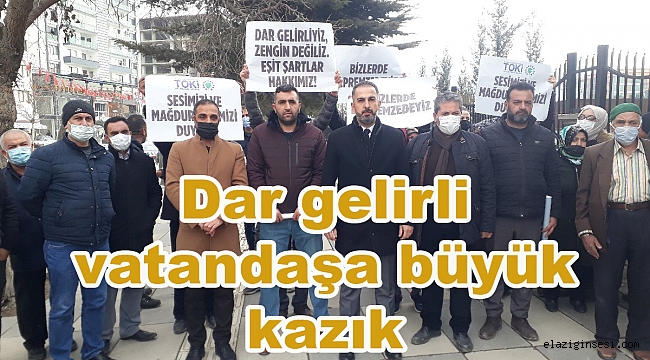 ‘Dar gelirlere için yapılan sosyal konutlar 2020 yılında meydana gelen deprem sonrasında elimizden alındı' diyen bir başka dar gelirli vatandaş ise, “Elimizden alınan konutların birçoğu kiralık ve satılık. İnsan aklı almıyor. 2022 yılındayız şuanda bize tahsis edilen konutların bedellerin altında çıkılacak gibi değil bu insanlarla dalga mı  geçiyorlar. 2019 yılında bana tahsis edilen 3+1 konutun bedeli 180 ile 210 bin TL arasındayken şuanda  750 bin TL'yi geçen bir maliyet var. Bu insanlarla dalga mı geçiyorlar yazık günahtır. Kaç senedir sesimizi duyuracak bir yetkili bulamıyoruz. Bu mağduriyetimizin derhal giderilmesini istiyorum artı 2019 yılında bize tahsis edilen evlerin bedelinin aynısı istiyoruz. Ülkemizde ekonomik kriz var ama bunun bedelini neden bize yansıtıyorlar bizim suçumuz nedir? Ben 210 bin TL ödeyip de  evimi  almam gerekirken neden 750 bin TL'ye evimi alayım benim suçum nedir?” şeklinde konuştu.