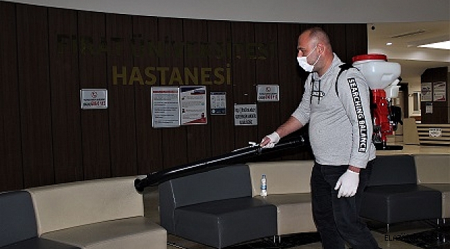 Bir çok nokta olduğu gibi vatandaşların yoğun olarak gittiği Fırat Üniversitesi Hastanesi de de dezenfekte ve ilaçlama çalışması yapıldı. Poliklinikler başta olmak üzere toplu kullanım alanlarının belirli aralıklarla dezenfekte işleminin süreceği belirtildi.