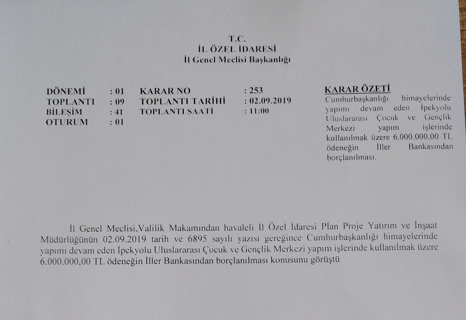 İl Özel İdaresi Genel Sekreter Yardımcısı Murat Okubay ise MHP İl Genel Meclis Üyesi Osman Dilek’in çelişki iddialarına “Bizim size verdiğimiz Eylül ayındaki listede biz tesisi ipek yolu üzerinde ki bütün işleri anlatmak üzere böyle bir metinle geldik. Yani burada sehven yapılan bir şey de yok yanlış yapılan bir şeyde yok. Eylül ayında vermiş olduğumuz metin tamamen projenin tamamını anlatan bir metindir. Ancak biz bugün ipek yolu için iller bankasından alacağımız krediyi il özel idaresi adına kullanacağımızdan ve bunları hakedişler yapılan ihaleler üzerinden talep edeceğimizden bizimde il özel idaresi olarak iki ihaleyi esas aldık. Bir etabı çocuk ve gençlik sportif yapım işi ihalesidir. Diğeri ise Uluslararası İpek yolu gençlik merkezi bünyesinde idari bina, yurt binası, atölye binası yapım işidir. Biz bu ihalelerimize devam ettik ve yaptık. Bunların hakedişlerini daha önceki ödeneklerle devam ettirdik. Ancak eksik kalan bir etap için 1 Milyon 336 bin TL , diğer etap için 4 Milyon 664 bin TL yani toplam 6 Milyonu biz iki etaptaki ihalelere böldük. Aslında bugün size tebliğ edilen bu kısımdı. Yani Eylül ayında almış olduğumuz kararla 4 Şubattaki karar ve bugün bilgi amaçlı sizlere okunan metin bir bütündür. İlk günden bu güne hiçbir çelişki barındırmıyor” diyerek cevap verdi.