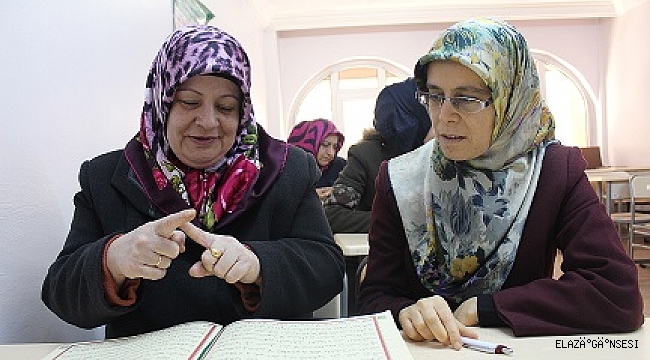 Elazığ’da işitme engellilere yönelik açılan kursta 20 kursiyer, işaret diliyle hem Kur’an-ı Kerim okumayı öğreniyor hem de temel din bilgisi eğitimi alıyor.