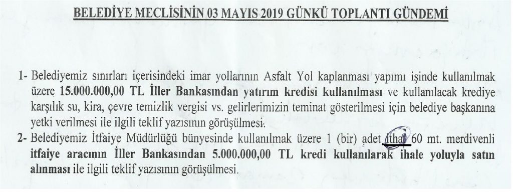 İlimizde yeni imar planı nedeniyle 15 katlı binaların yapılması 60 metrelik itfaiye aracı ihtiyacını ortaya çıkardı. Bu nedenle Elazığ Belediyesi araç parkına 60 metrelik itfaiye aracı alabilmek için Belediye Meclisinden İller Bankasından 5 milyon kredi kullanılması talebinde bulundu. Kredi talebinden bulunması için meclise gönderilen yazıda itfaiye aracının ithal ibaresi gündemi sarstı. Milliyetçi Hareket Partisi Meclis üyesi Burak Düzenli yaptığı konuşmada Türkiye 60 metre itfaiye aracı yapan firmanın bulunduğunu gündeme gelen araç talebinden neden ithal ibaresinin konulduğunu sordu. Düzenli’nin bu açıklamasından sonra ithal ibaresinin kaldırılması şartı ile talep kabul edildi.