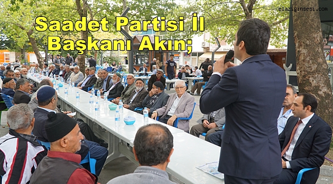 Ziyaret sonrası değerlendirmelerde bulunan Saadet Partisi İl Başkanı Akın; “ Hepimiz farklı siyasi görüşlere sahip olabiliriz. Ancak şunu ifade etmek isterim ki Elazığ’ımızın ve Karakoçanın bir takım ciddi sorunları var. Bu sorunları bizler kavgayla, çatışmayla, sloganik sözlerle çözmemiz mümkün değil. Bu sorunlar ancak akıl, bilgi, plan, proje ve kadro ile çözülür. Bakınız İlçe nüfusu küçülüyor, neredeyse genç nüfusu kalmamış. Çünkü ilçede bir insanın yaşamını idame edebileceği imkanda iş yok. Gençlerimiz ne ilçede ne ilde ne de ülkemizde iş bulabiliyor. Bundan dolayıdır ki yurtdışına çıkıyorlar. Bakınız ilimizde kayıtlı 30 bin, kayıtsızlarla birlikte 60 bin insanımız işsiz. Bunun ölçeğini anlamak için şöyle bir örnek vermek istiyorum. Elazığ’a yeni yapılan stadyumdan 4 tane yaparsanız ancak bu işsizleri sığdırabilirsiniz. İlimiz 20 yıl önce tarım ve hayvancılıkta 6. Sıradaydı Şu an 41. Sıraya düşmüş durumda. Yine ilçelerimizde hastaneler ve okullar tam donanımlı değil. Turizm açısından yeterli desteği ve yatırımı almış değil. Sorun bu kadar büyükse, çözümü de büyük olmak zorundadır. İşte bundan dolayıdır ki biz Saadet Partisi Elazığ Kalkınma Planını hazırladık. Bu planla göre Karakoçan’da, Palu, Kovancılar üçgeninde 10 bin kişi istihdam edilecek. Tarım ve hayvancılık girdilerinden vergiyi kaldıracağız. Hastaneleri ve okulları tam donanımlı hale getireceğiz. Gencimiz bu güzel İlçede kalacak, aile korunacak, ekonomi iyileşecek alım gücü artacak esnafın yüzü gülecek. Tarım ve hayvancılık hak ettiği yere gelecek.“ dedi.