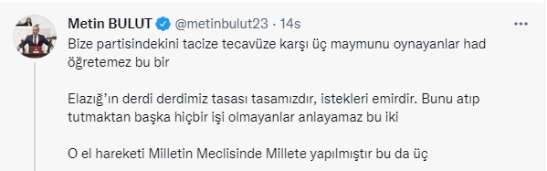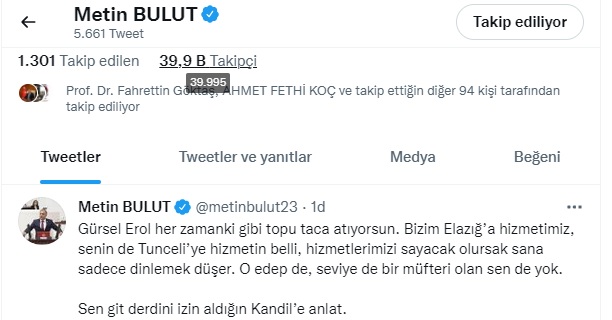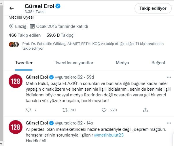 Son günlerde yaşanan gelişmeler sonucunda Ak Parti MKYK Üyesi ve İlimiz Milletvekili Metin Bulut ile CHP Parti Meclis üyesi ve İlimiz Milletvekili Gürsel Erol sosyal medya üzerinden söz düellosuna başladığı görüldü.