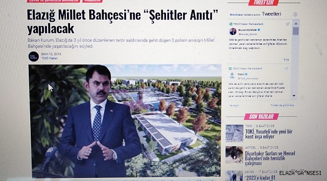 Cumhurbaşkanı Erdoğan 5 Haziran tarihinde On millet bahçesinin açılışını yaptı. Açılış öncesi Cumhurbaşkanı bazı şehirlerde bağlanarak bilgiler aldı. Cumhurbaşkanı Recep Tayyip Erdoğan, 81 ile 81 milyon metrekare millet bahçesi hedefi doğrultusunda Atatürk Kültür Merkezi alanında bulunan Ankara Millet Bahçesi inşaat sahasında düzenlenen tören ile İstanbul Pendik ve Halkalı, Sakarya, Samsun, Sivas, Diyarbakır, Trabzon, Batman, Bursa ve Elazığ’da yapımı tamamlanan millet bahçelerinin açılışını yaptı. 5 Haziran Dünya Çevre Günü nedeniyle yapımı tamamlanan 10 millet bahçesinin açılışını video konferans sistemi ile bağlantı yaparak gerçekleştirdi. Ancak açılan Millet Bahçesi içinde yapılması açıklanan şehitler anıtının yapılmadığı görüldü. Hatırlanacağı üzere 12 Ekim 2019 tarihinde İlimizi ziyaret eden Çevre ve Şehircilik Bakanı Murat Kurum Programı kapsamında Elazığ’a gelerek, ilk olarak Valiliği ziyaret ederek Vali Çetin Oktay’dan Elazığ hakkında brifing aldı daha sonra inşası devam eden Millet Bahçesi’nde incelemelerde bulundu. Burada basın mensuplarına açıklamalarda bulunan Bakan Kurum, Millet Bahçesi’nin olduğu yerde 3 kahraman polisin şehit olduğunu anımsatarak “Burada 26 bin metrekarelik alanda sadece emniyet müdürlüğü binamız vardı. Bir terör eylemi sonucunda patlama meydana geldi. 3 polisimiz şehit oldu. 3 şehidimizin haklarını ödeyemeyiz. Allah rahmet eylesin. Kısa süre içinde tamamlayacağımız Millet Bahçemizde, şehit polislerimizin anılarını yaşatacağız. Parkın içerisinde Elazığ tarihinde kahramanlıklarıyla ön planda çıkmış büyüklerimizi de hatırlatacak önemli tanıtım broşürleri olacak. Burası 24 saat yaşayacak bir park olacak” şeklinde konuşmuştu. Bu açıklama TOKİ'nin haber sitesinden de yayınlanmıştı