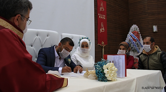 Çin'de ortaya çıkıp dünyayı saran korona virüsünün Türkiye’de de yayılarak devam etmesi nedeniyle alınan tedbirler arttırılarak devam ediyor. Ülke genelinde olduğu gibi Elazığ'da da tüm kurumlarla birlikte belediye de yoğunluk olarak dezenfekte ve ilaçlama çalışmaları gerçekleştiriyor. Elazığ' korona virüs nedeniyle tüm nikahlar önlem amaçlı törensiz ve iki şahit eşliğinde kıyılıyor. Özellikle İçişleri Bakanlığı’nın gönderdiği genelde nişan düğün salonlarının faaliyetleri geçici bir süreliğine durdurulması üzerine kentte nikah kıyma işlemleri sadece Kültür Park Evlendirme Dairesi’nde gerçekleştiriliyor. Nikah memuru başta olmak üzere katılanlar maske takarak nikah kıyma işlemini yapıyor. Virüs salgınına karşı maske takarak nikah salonuna gelen çiftler ise getirilen uygulamanın yerinde olduğunu aktarıyor.