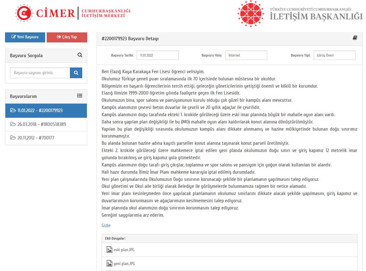Yeni yapılan plana göre 12 metrelik imar yolunun tamamı Karakaya fen lisesinin kampüs alanının içerisinden geçtiğine dikkat çeken Arslan; “Öğrencilerinin toplanma alanının içerisinden geçiyor. Spor salonuna ve pansiyona giden merdivenlerimiz oradaki alt yapılarımız oradaki elektrik ve kanalizasyon hatlarımız hepsi imar yolunda kalıyor. Okulların harcama kalemleri kısıtlı. Okula bir çevre düzeni yapmak zor bir işlem. Elazığ’da yaşayan yöneticiler olarak okul alanlarını genişletmemiz gerekiyor. Daraltmamız gerekmiyor. Mevcut kampüs alanının çocuklar için daha geniz ve düzenli daha ferah olması için çabalamamız gerekiyor. Bunun aksine uygulama söz konusu dedi