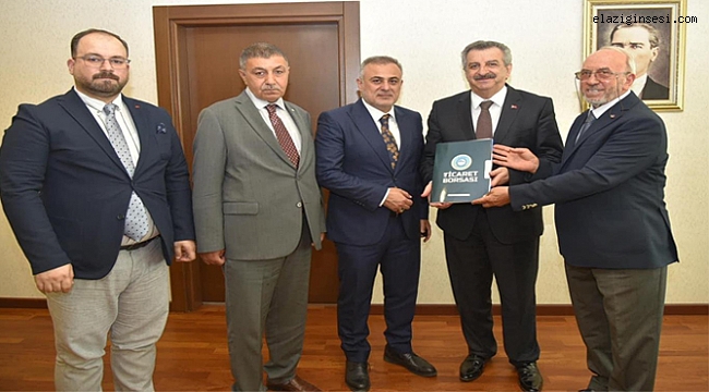 Elazığ Ticaret Borsası Yönetim Kurulu Başkanı Mehmet Ali Dumandağ ve beraberindeki yönetim kurulu üyeleri Sanayi ve Teknoloji Bakan Yardımcısı Hasan Büyükdede’yi ziyaret etti. AK Parti İlimiz Milletvekili Metin Bulut yazılı açıklamasında "Ticaret Borsası Yönetim Kurulunun Hayvan Ürünleri OSB içerisinde yapımı planlanan Elazığ Ticaret Borsasının “Tedarik ve Ticaret Merkezi Projesi” başta olmak üzere ilimizde hayvancılık ve kırmızı et sektörüne dayalı sanayinin gelişimi ile ilgili talep ve projelerimizi ilettikleri" vurgulandı