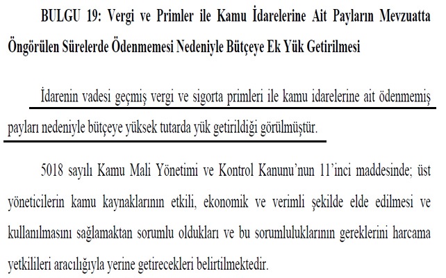 Raporda, 5018 sayılı Kamu Mali Yönetimi ve Kontrol Kanunu’na dikkat çekilerek, üst yöneticilerin kamu kaynaklarının etkili, ekonomik ve verimli şekilde kullanılmasından sorumlu olduğu hatırlatıldı. Kanunun 11’inci maddesine göre bu sorumluluğun harcama yetkilileri aracılığıyla yerine getirilmesi gerektiği vurgulandı.Aynı Kanun’un 8’inci maddesinde ise kamu kaynaklarının elde edilmesi ve kullanılmasında görevli olanların, bu kaynakları hukuka uygun ve verimli biçimde kullanmakla yükümlü olduğu belirtildi.Raporda ayrıca Kanun’un 34’üncü maddesine atıf yapılarak, kamu idarelerinin nakit yetersizliği yaşaması halinde ödemelerde öncelik sırasının açıkça belirlendiği ifade edildi. Buna göre, vergi, resim, harç, sigorta primi, fon kesintileri ve kamu paylarının; gecikme cezası veya faiz gibi ek yük doğurabilecek borçlar arasında öncelikli olarak ödenmesi gerektiği kaydedildi.Yapılan incelemelerde, vadesi geçmiş vergi ve prim borçları bulunmasına rağmen diğer ödemelere öncelik verildiği, bu durumun da yıllar içinde kamuya olan borçların birikmesine yol açtığı tespit edildi.BELEDİYEDEN SAVUNMA: “BORÇLAR YAPILANDIRILDI”Elazığ Belediyesi tarafından Sayıştay’a verilen yanıtta, ödenmeyen vergi ve prim borçları ile kamu idarelerine ait payların taksitlendirildiği veya yapılandırıldığı belirtildi. SAYIŞTAY’DAN NET UYARISayıştay raporunda, kamu kaynaklarının etkili, ekonomik ve verimli yönetilmesi için Elazığ Belediyesi’nin vergi, sigorta primi ve kamu idarelerine ait paylarını mevzuatta öngörülen sürelerde ödemesi gerektiği açıkça belirtildi.