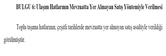 DANIŞTAY KARARLARI DA HATIRLATILDISayıştay raporunda, Danıştay 13. Dairesi’nin çeşitli kararlarına da yer verildi. Bu kararlarda özetle;- Toplu taşıma hizmetlerinin özel kişilere devrinde belirli bir sürenin mutlaka öngörülmesi gerektiği,