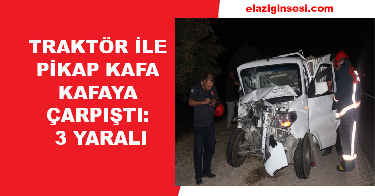 Elazığ’da traktör ile pikabın kafa kafaya çarpışması sonucu meydana gelen kazada 3 kişi yaralandı