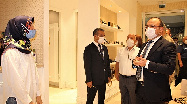 İçişleri Bakanlığının yayınladığı genelgeyle birlikte tüm ülkede olduğu gibi Elazığ'da da korona virüs denetimleri devam ediyor. Bu kapsamda denetimleri inceleyen Vali Erkaya Yırık, bir alışveriş merkezinde esnaf ve vatandaşları Covid-19'a karşı uyardı. Vatandaşlarla sohbet eden Vali Yırık, aynı zamanda istek ve taleplerini de dinledi.