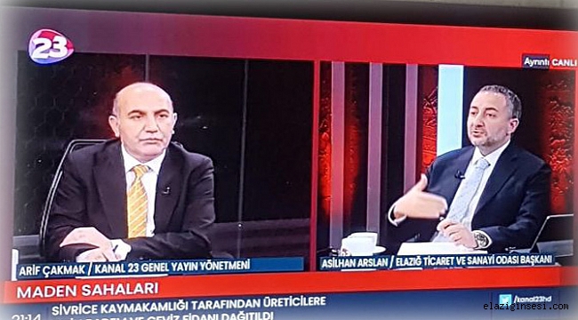 Elazığ TSO Yönetim Kurulu Başkanı Asilhan Arslan dün akşam Kanal 23 Genel Yayın Yönetmeni Arif Çakmak Tarafından hazırlanan Ayrıntı programında Maden ilçesinde MTA tarafından tespit edilen ve Türkiye’nin bugüne kadarki en zengin bakır maden yatağı olarak açıklanan sahanın Elazığ iş dünyası tarafından işletilmesiyle ilgili süreçler hakkında çok önemli değerlendirmelerde bulundu.