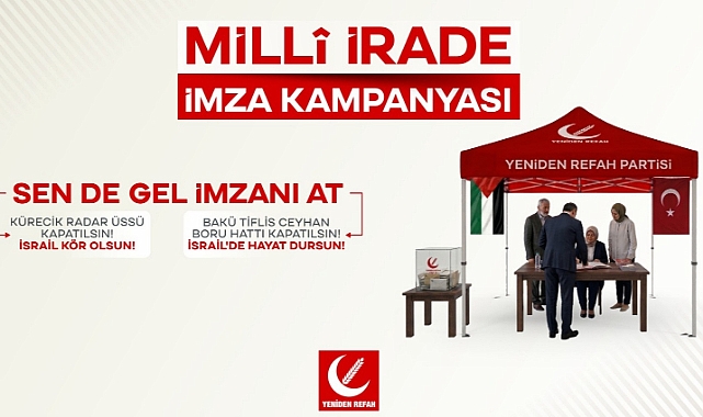 Yeniden Refah Partisi İl Başkanlığı, “Kürecik Radar Üssü kapatılsın, İsrail’de hayat dursun” sloganıyla Türkiye genelinde geniş kapsamlı bir imza kampanyası başlattı. Parti teşkilatları, il ve ilçe merkezlerinde kuracakları stantlarda vatandaşlardan imza toplayacak